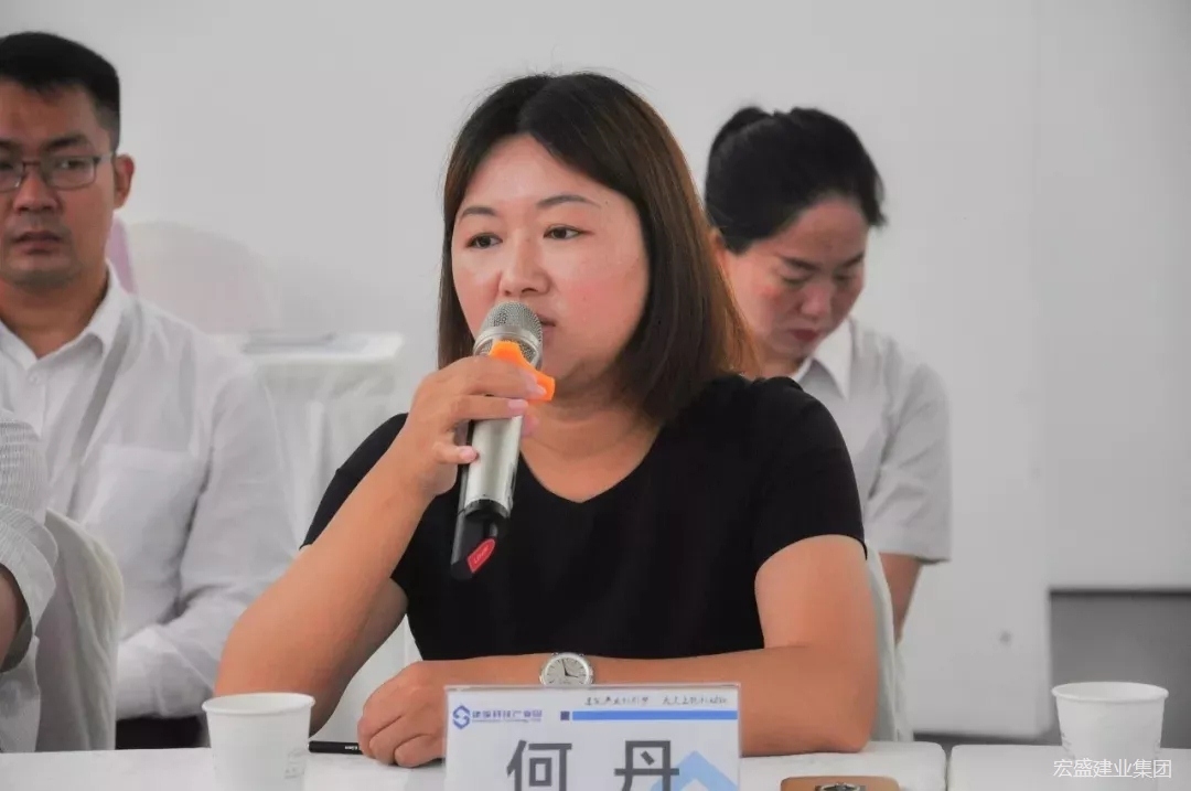 在建筑科技产业园,调研组一行先后察看了项目建设现场和产业园最具有代表性的源·建筑科技文化馆,并组织召开相关人员座谈会。宏盛建业投资集团执行总裁周金旺、产业园执行总裁何丹分别就企业发展与项目建设进展情况,和产业园招商运营中需要解决的有关问题进行了汇报。