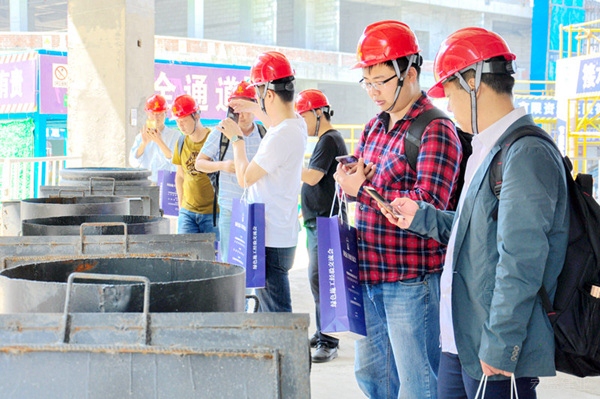 观摩中,与会人员参观了工地办公、生活区域,重点观摩了安全体验馆、雨水收集区、现场作业区。