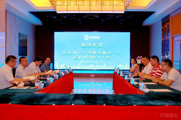 7月10日下午,阳光城集团旗下华济建设工程集团有限公司总经理魏俊松一行到访宏盛建业投资集团实地考察交流。宏盛建业投资集团总裁陈明山、市场管理中心总经理蔡锦标等陪同考察并座谈。