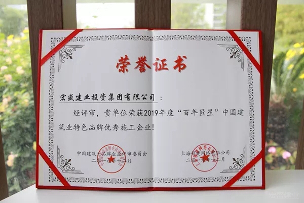 宏盛建业获评2019第四届“百年匠星”中国建筑业特色品牌企业