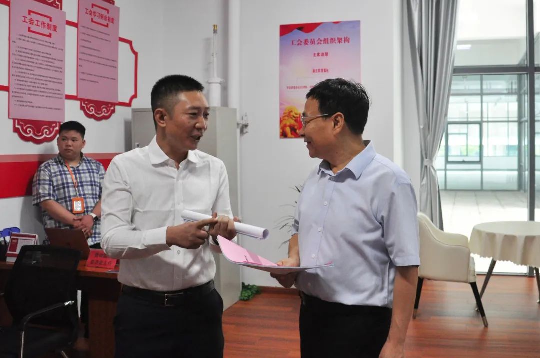 刘强指出,企业工会是党联系工人群众的桥梁和纽带,也是工会会员和职工利益的代表。我们党历来对工会工作都高度重视和大力支持,希望你们工会平时要多倾听员工心声,多组织开展员工活动,关注员工思想生活状态。要维护好职工合法权益、竭诚服务好职工群众,做好新时代工会干部应有的责任担当。要坚持“党建带工建”思想引领,继续加大工作力度,不断探索新时代民营企业做好工会工作的新方法、新模式,为激发职工群众的工作热情和推动园区经济高质量发展作出更多贡献。