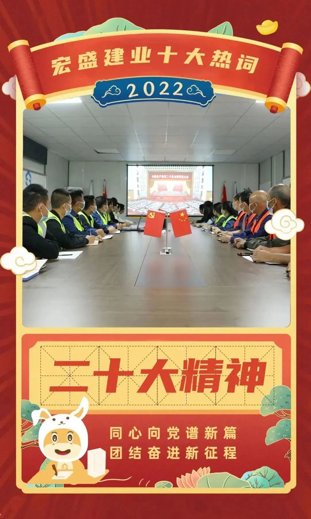 我们作为在党领导下发展起来的一家民营企业,争做学习贯彻党的二十大精神的排头兵,毫不动摇坚持以习近平新时代中国特色社会主义思想为指导推进集团跨越式发展。2022年,集团广泛开展“奋进新征程,建功新时代”系列活动,以实际行动践行人民至上的理念,铸造更多精品工程,为社会主义现代化建设贡献应有的力量。