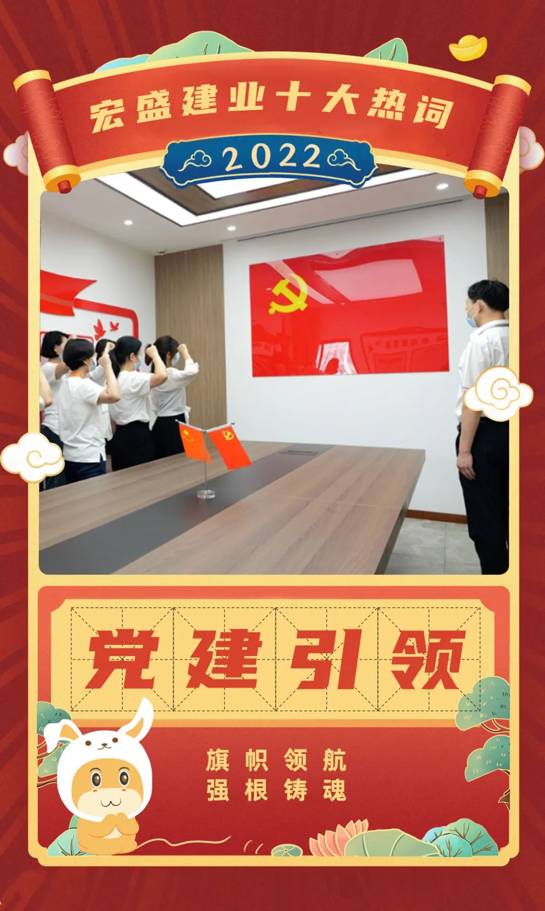 这一年,集团党支部紧紧围绕党建“一号工程”,扎实推进基层党建“标准化、规范化、信息化”建设,着力打造“党建凝聚力量,宏盛初心不忘”为主题,“支部建在项目上,党旗飘在工地上”为主线的民营建筑企业党建品牌。坚持旗帜领航、稳中求进,各项工作取得新成效。