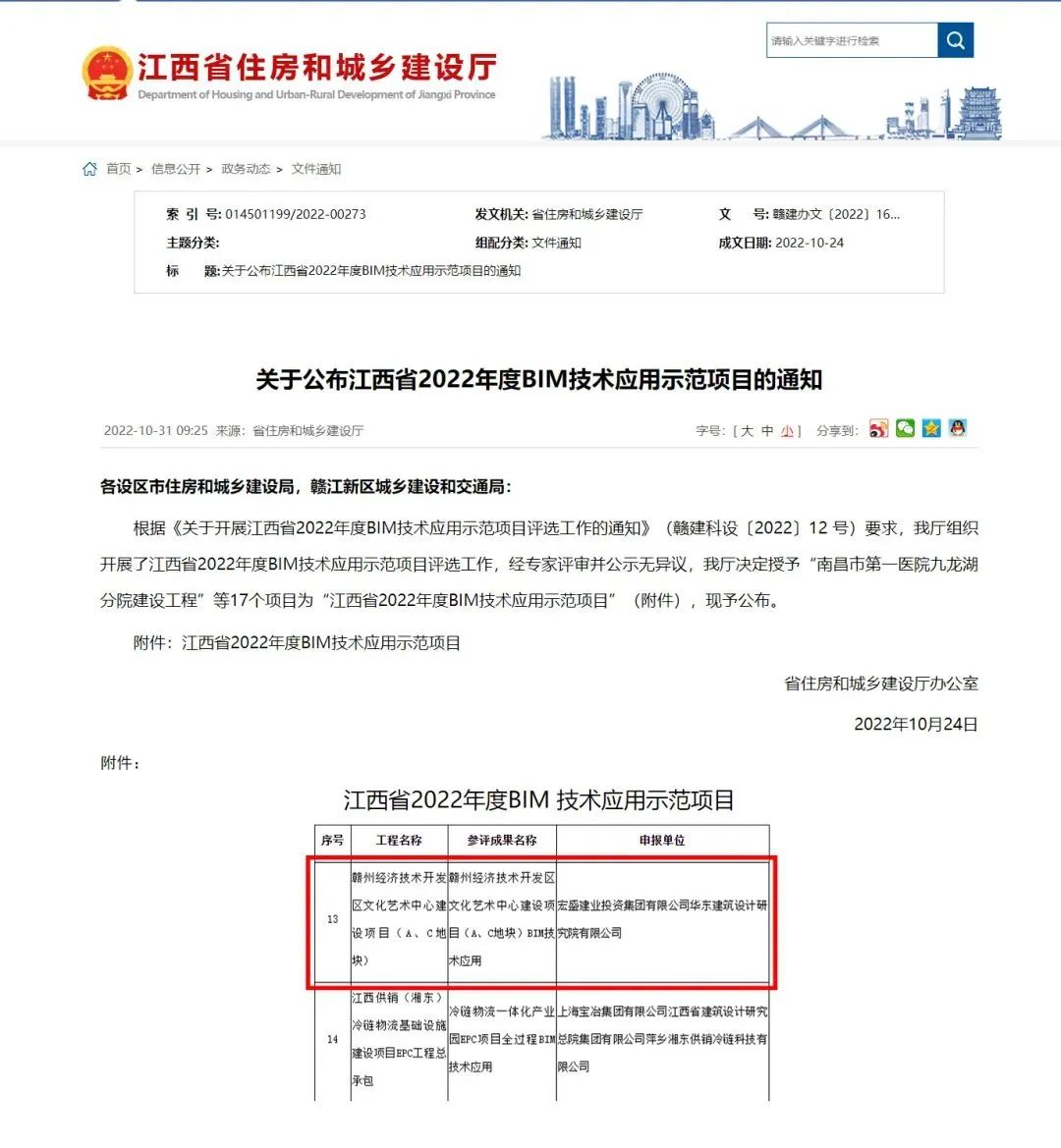 这一年,江西省“质量月”活动暨质量管理标准化观摩会,在赣州经济技术开发区文化艺术中心(A、C地块)建设项目举行。该项目同时获评江西省2022年度BIM技术应用示范项目