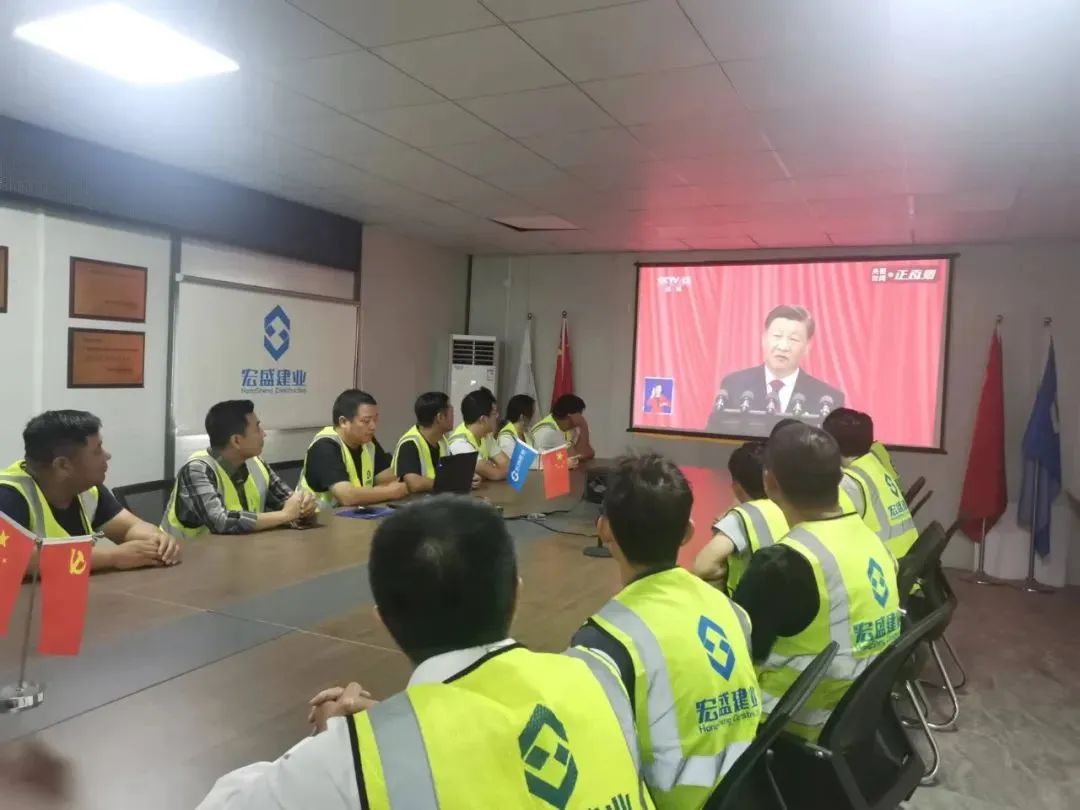 10月16日9:30,在中共宏盛建业投资集团有限公司支部委员会的号召下,集团总部及各分子公司、上饶中心血站项目部、赣州文化艺术中心项目部的党员同志、发展对象、积极分子、入党申请人代表着装整齐,收看党的二十大开幕盛况。10点整,随着屏幕里国歌声响起,同志们纷纷起立奏唱国歌,并认真聆听习近平总书记在大会上的报告。