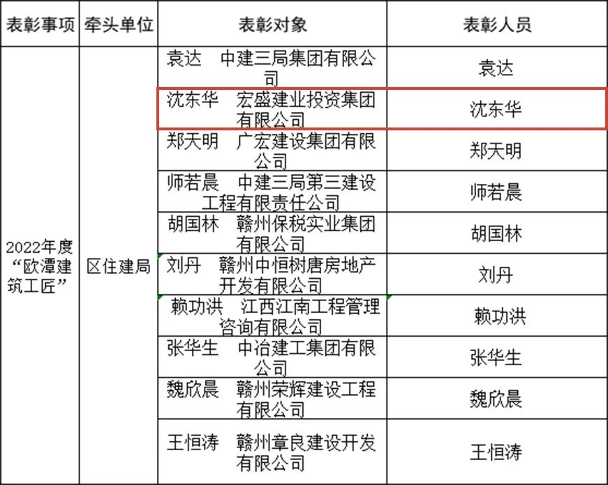 喜报 | 在赣州经开区2022年工作总结表彰大会上,沈东华荣获“建筑工匠”殊荣