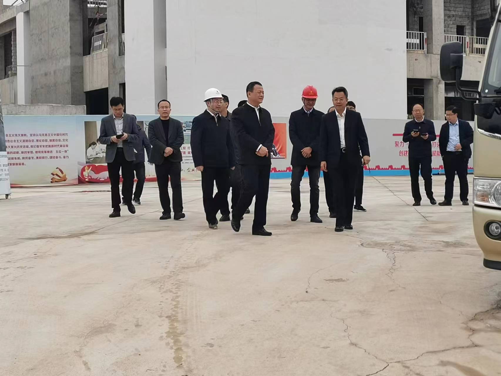 2023年2月1日上午11点25分钟,赣州市委副书记、市长李克坚,市委常委、赣州经开区党工委书记陈水连,市政府秘书长谢卫东等领导到赣州经开区文化艺术中心项目部调研督导工作,赣州市经开区西城公司肖晖总经理向赣州市委副书记、市长李克坚汇报赣州经开区文化艺术中心项目工程进展情况。市长李克坚对项目工程采用智慧施工及新工艺技术表示高度赞赏,同时对工地科学、规范施工管理给予充分肯定。