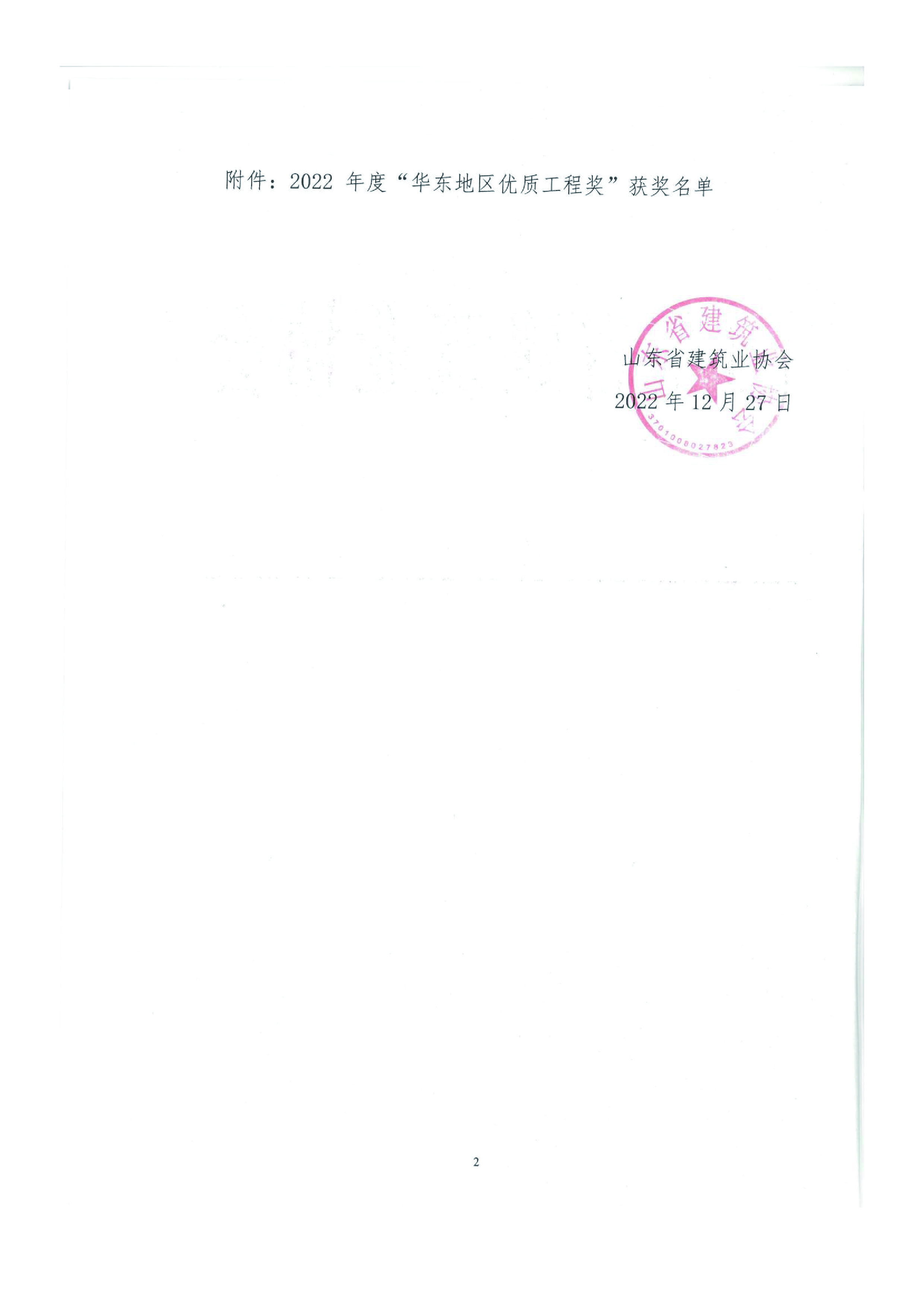 近日,山东省建筑业协会鲁建协(2022)32号文件中公布了关于表彰2022年度“华东地区优质工程奖”的通知。宏盛建业投资集团承建的“上饶装配式建筑产业示范基地(朝阳园)设计施工总承包项目”获评2022年度“华东地区优质工程奖”荣誉称号。