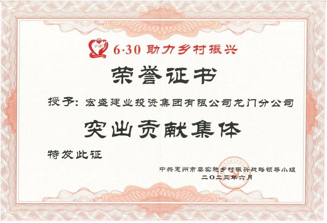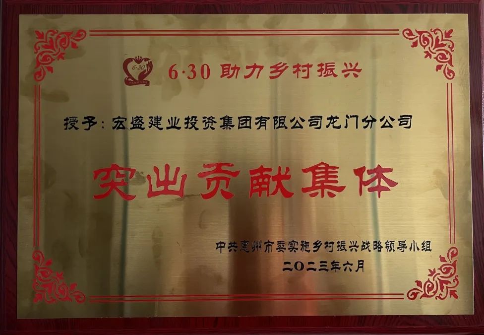 近日,惠州市委农村工作领导小组(实施乡村振兴战略领导小组)发出《关于表彰2022年度“6·30”助力乡村振兴突出贡献集体的通报》,对获得2022年度“‘6·30’助力乡村振兴突出贡献集体”的宏盛建业投资集团有限公司龙门分公司、太东集团有限公司等19个单位予以通报表彰。