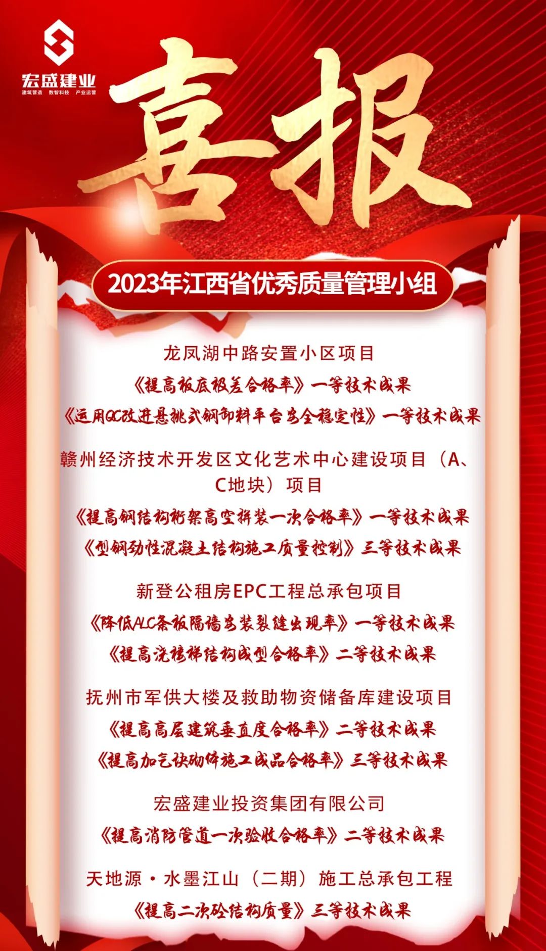 喜讯丨宏盛建业共荣获十项QC技术成果奖项