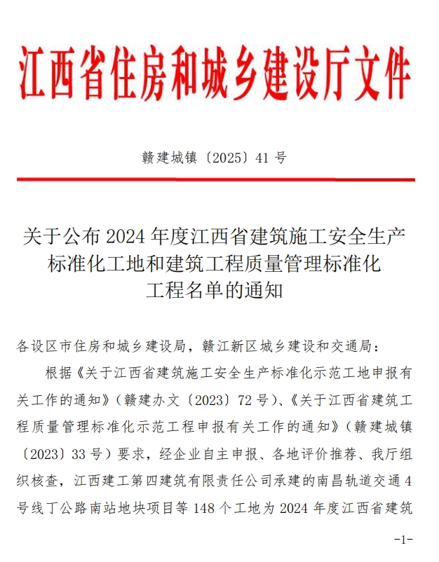 再添殊荣 | 宏盛建业集团承建项目获评2024年度江西省建筑施工安全生产标准化工地和建筑工程质量管理标准化工程