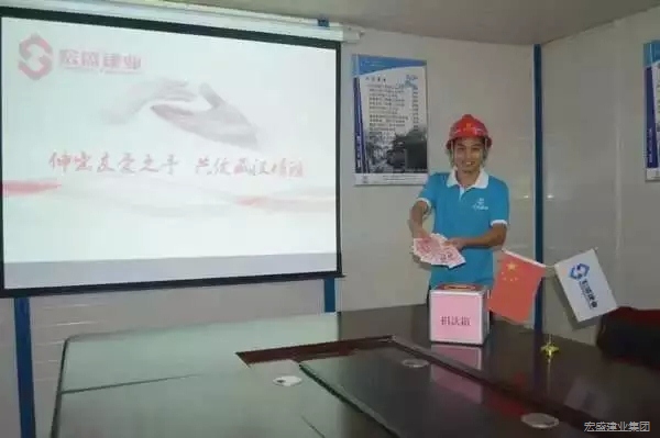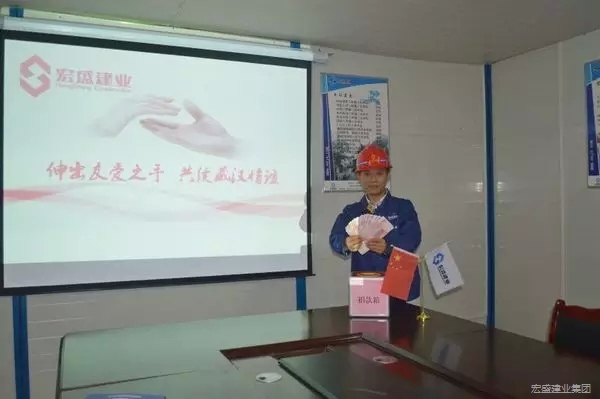 昨晚,一场为小金县汗牛乡小学生奉献爱心的捐款活动在红鱼洞项目部进行。虽然正值紧张的施工阶段,但宏盛建设者们得知集团发出了为汗牛乡小学生捐款的倡议,同时董事长也率先捐出十万元发起成立江西援建者爱心助学基金后,大家还是抓紧晚上下班休息时间自发来到项目部。