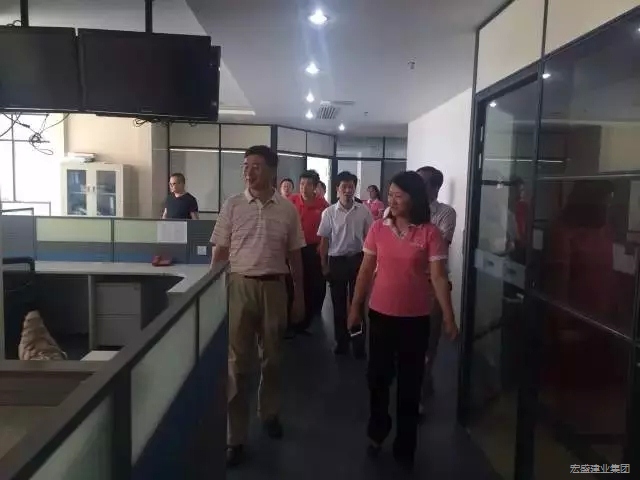 集团公司副总经理何丹(右一)向评审团介绍南昌总部整体办公环境