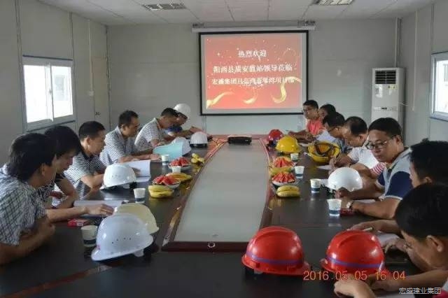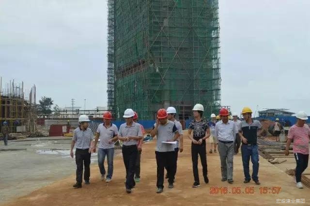 5月6日,广东省阳江市阳西县质安站罗站长一行4人莅临集团公司月亮湾滨海旅游度假区翡翠湾住宅小区(4#、5#号楼)工程项目检查指导。