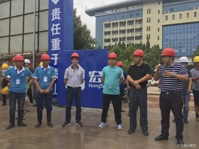 在观摩完现场施工项目工地后,县建设局副局长刘汉昌首先通报了上半年全县建筑施工安全生产情况,并安排布置了建筑施工领域安全生产工作,随后,便民服务中心相关负责人作为施工单位代表做了发言,汇报了工程项目的简要概况及安全生产施工上的具体举措,并承诺在今后的建设施工中,将继续发扬“特别能吃苦、特别能战斗、特别能奉献”的宏盛精神,用优质工程向横峰县广大人民群众交上一份满意的答卷。
