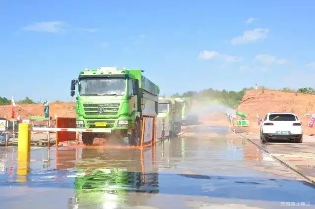 在施工现场,笔者看到,一辆辆装满泥土的大卡车开进装有感应器的洗车设施,瞬间,如一道洁白的银川倒挂,整部卡车被冲洗得干干净净的同时偶尔还会有彩虹出现,形成一道亮丽的风景线,丝毫没有传统工地脏乱差的影子。