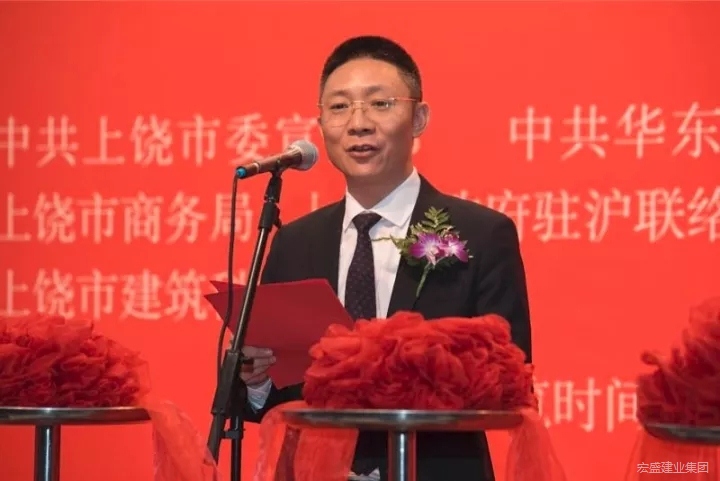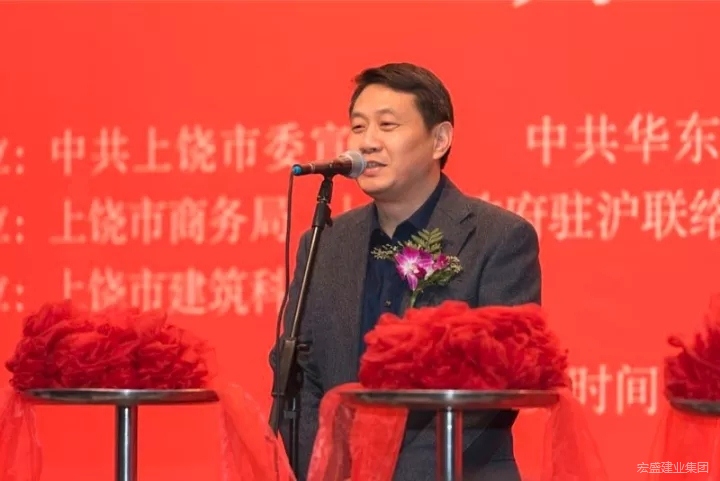 宏盛建业投资集团董事长周金虎在开幕式上热情地邀请上海艺术界的朋友和企业家们有机会到上饶建筑科技产业园参观指导。