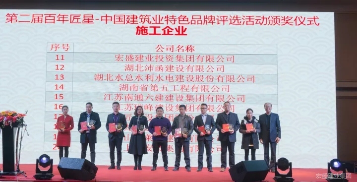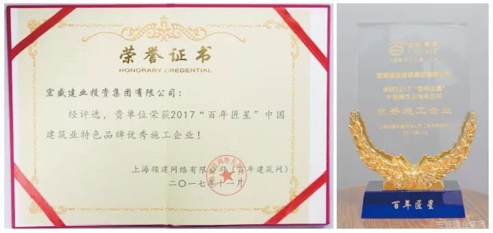 宏盛建业投资集团获“百年匠星” 中国建筑业特色品牌优秀施工企业称号