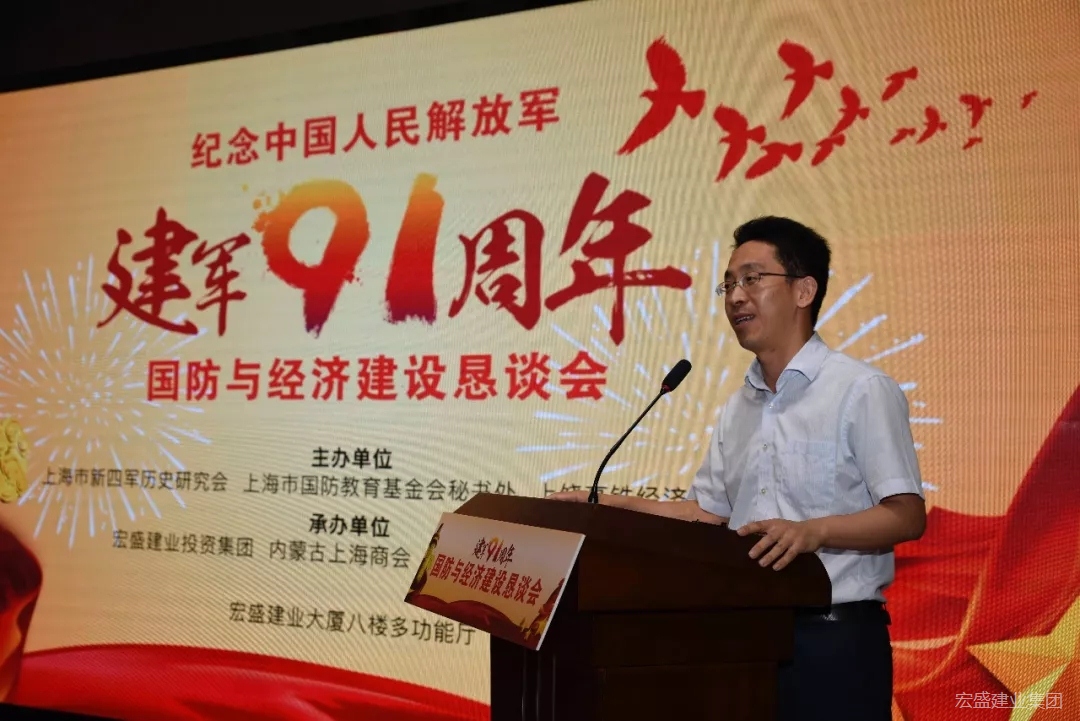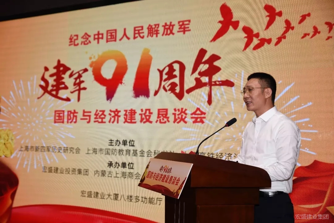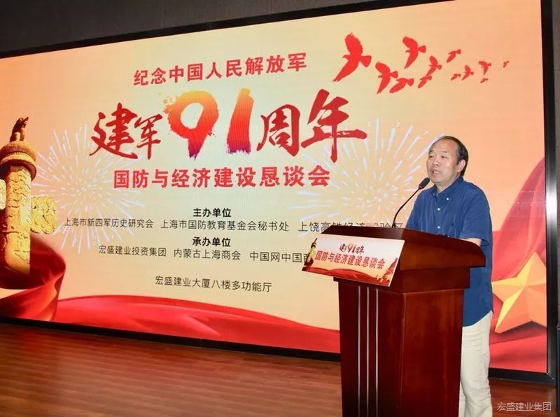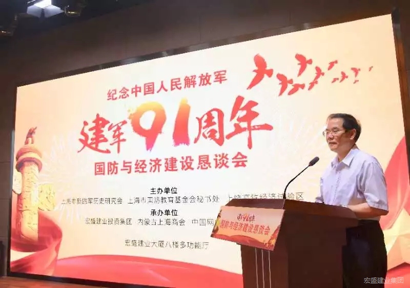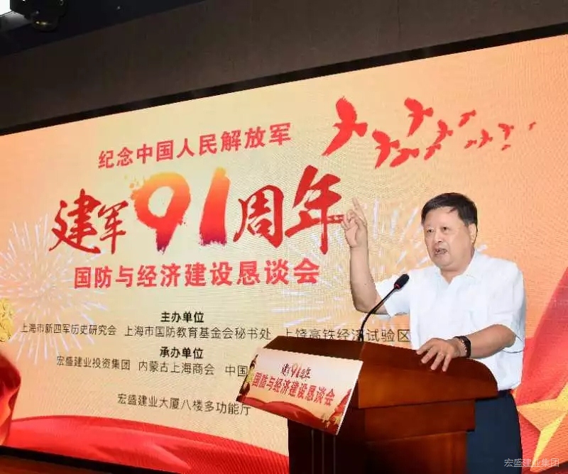 7月25日下午,由上海市国防教育办公室指导,上海市新四军历史研究会、上海市国防教育基金会秘书处、上饶市高铁经济试验区等单位主办,宏盛建业投资集团等承办的“庆祝中国人民解放军建军91周年---国防与经济建设恳谈会”在集团上海总部八楼举行,来自四十二家商协会秘书长参加、国防教育先进单位代表100多人出席活动。