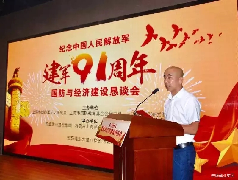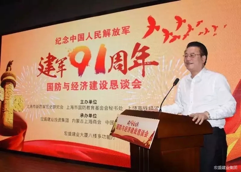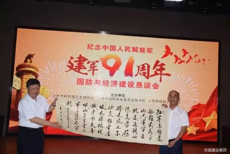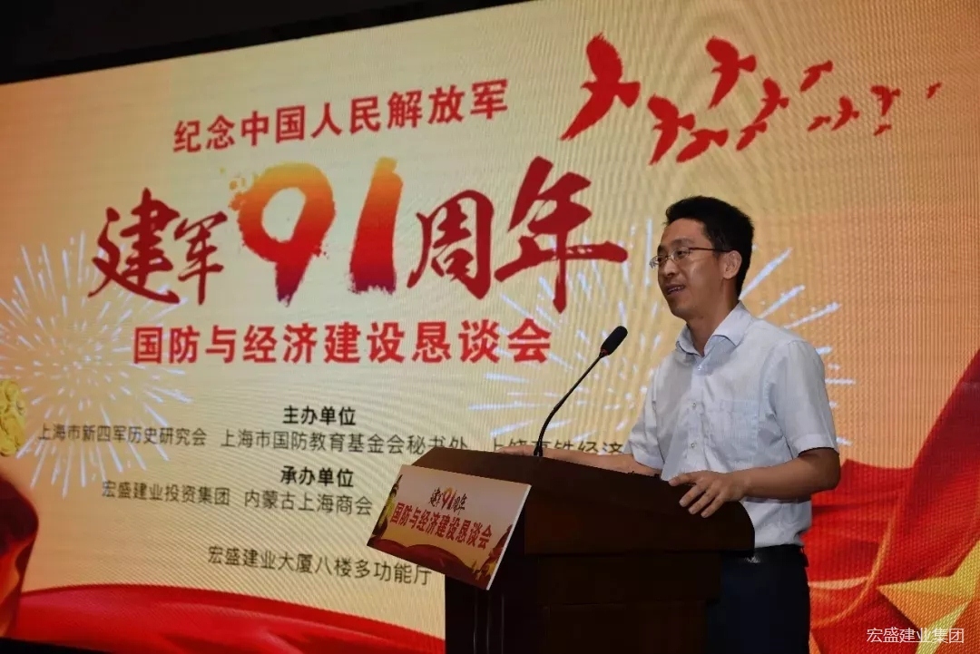 7月25日下午,由上海市国防教育办公室指导,上海市新四军历史研究会、上海市国防教育基金会秘书处、上饶市高铁经济试验区等单位主办,宏盛建业投资集团等承办的“庆祝中国人民解放军建军91周年---国防与经济建设恳谈会”在集团上海总部八楼举行,来自四十二家商协会秘书长参加、国防教育先进单位代表100多人出席活动。