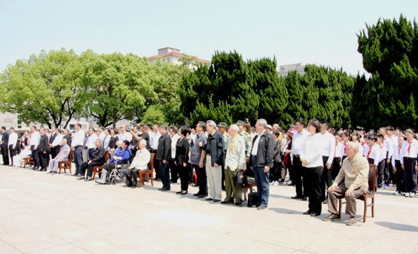 在祭奠仪式上,人们向革命英烈敬献花篮,并肃立默哀,深切怀念为上海的解放和建设事业立下了不朽功勋的英雄们。