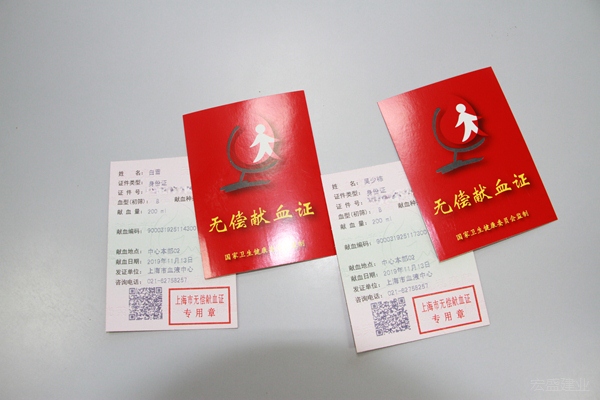 为弘扬中华民族团结友爱的人道主义精神,宣传和传播无私奉献的传统美德,响应上海市血液中心无偿献血倡议,宏盛建业组织员工积极参加无偿献血活动。