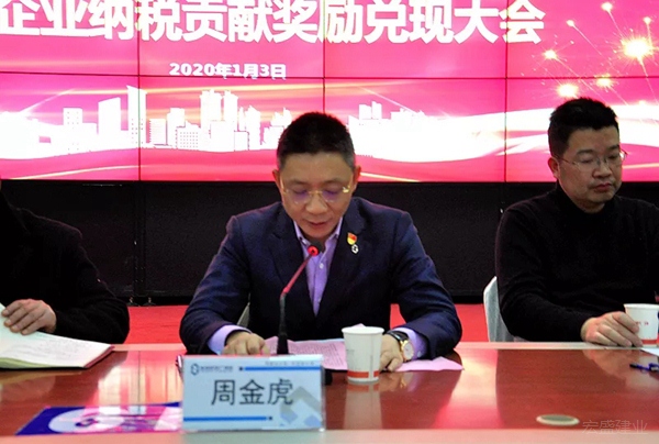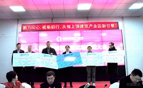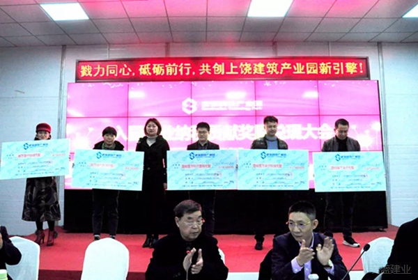 1月3日下午,上饶建筑科技产业园(下称“建业硅谷”)隆重举行入园企业纳税贡献奖励兑现大会,一次性向优质入园企业兑现奖金1300余万元。宏盛建业投资集团、上饶市建筑科技产业园投资管理有限公司董事长周金虎出席会议并讲话。会议由宏盛建业投资集团顾问林孙珍主持。