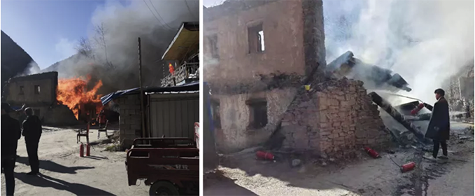 2021 年 12 月 15 日,四川省阿坝州大西村村民家中突发火灾。由于风速较大, 村民家为木质结构,火势迅速蔓延。宏盛建业投资集团S220线大渡河双江口水电站库区复建公路工程项目部接到火情后,在森林消防大队的组织下,立即启动应急预案、奔赴现场。
