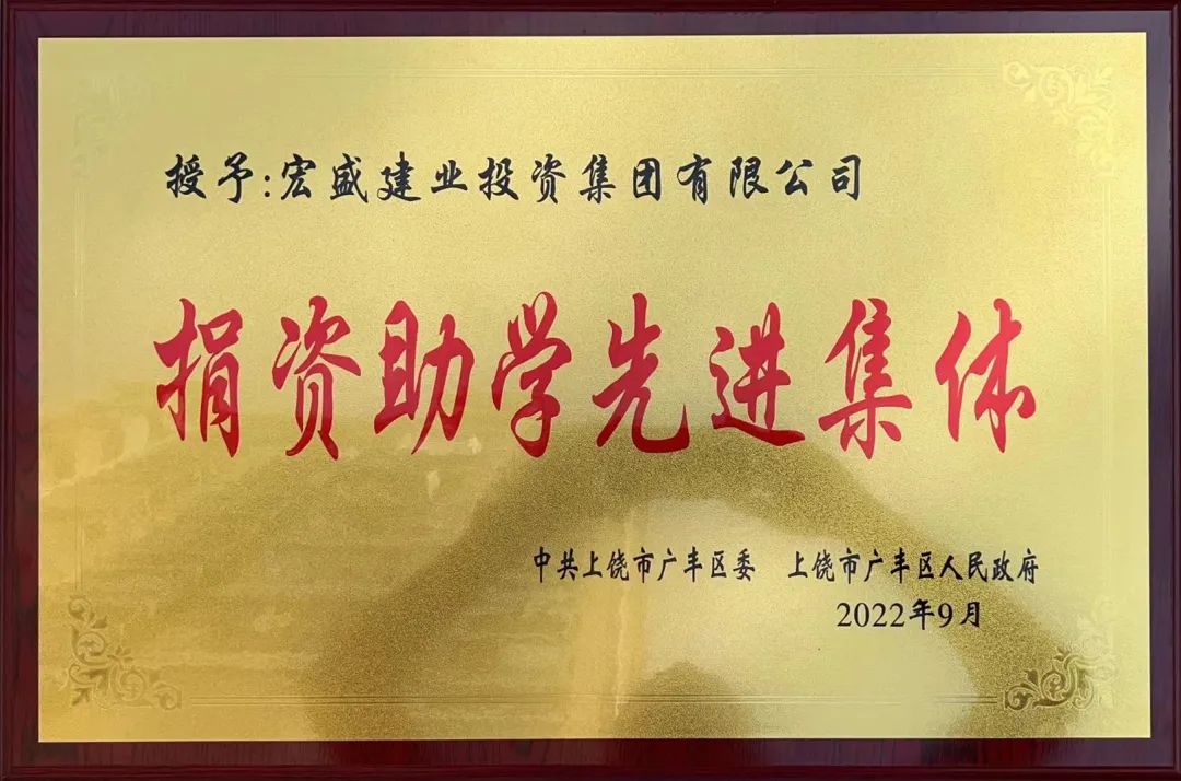 宏盛建业投资集团荣获“捐资助学先进集体”称号