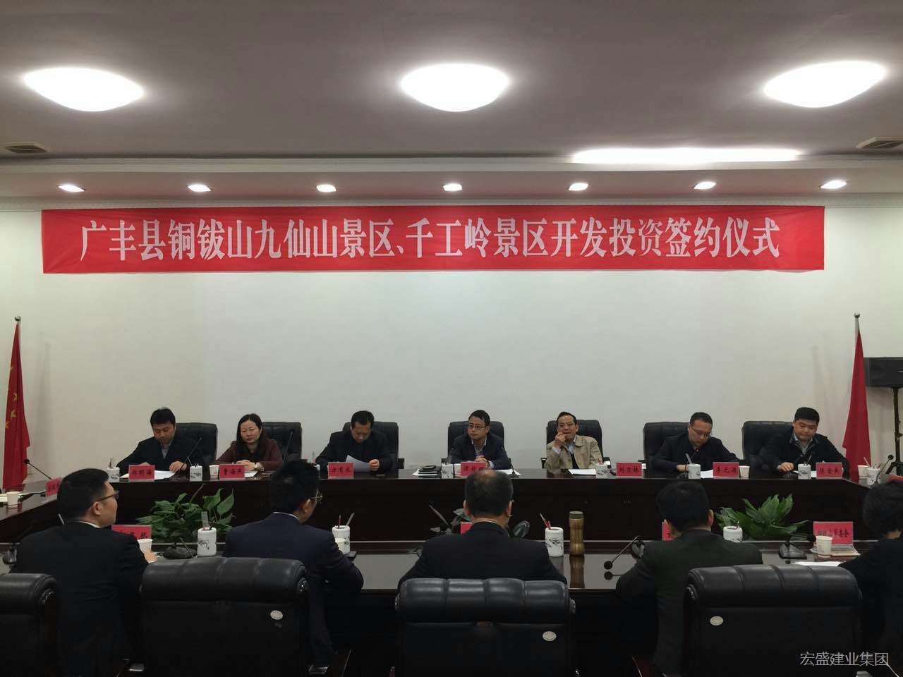 2015年3月20日上午9时18分,“广丰县铜钹山九仙山景区、千工岭景区开发投资签约仪式”在广丰县常委会议室召开,仪式由县委常委、宣传部长李元涛主持,县长谭赣明、县人大常委会主任刘月林、县政协主席方月水等县四套班子领导出席并见证了本次签约仪式。董事长出席了签约仪式。