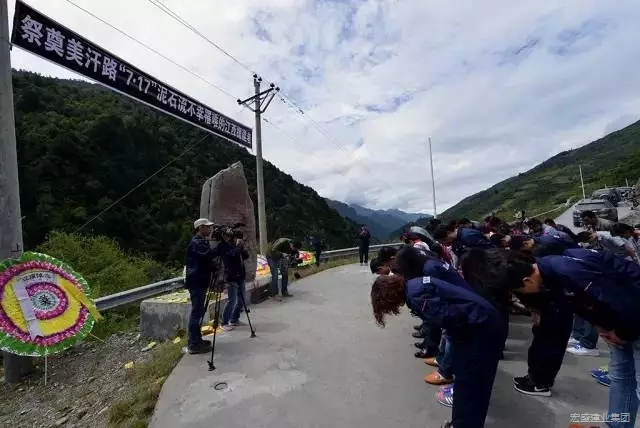 9月1日,所有人员一大早就出发前往天路“美汗公路”,翻越海拔4916米的木壳梁子垭口,来到纪念碑处,汗牛乡的群众们早已在路上列队欢迎远方而来的江西亲人们。2009年7月17日,突如其来的“7.17”特大泥石流灾害,江西省援建者中的五名工友长眠在了这片他们日夜奋战的雪域高原。
