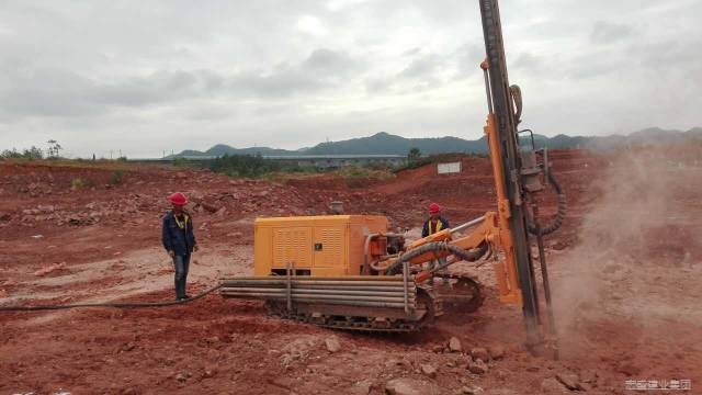 10月1日上午,在上饶建筑科技产业园,项目部指挥长甘小林仍像往常一样,来到施工现场,查看钻孔进度和爆破准备情况。由于地下岩石较深,土方开挖遇到了难题,只有采取钻孔爆破法才能进行挖掘,甘小林带领相关施工人员连续加班加点,科学研究细化实施方案,确保工程进度不受影响。