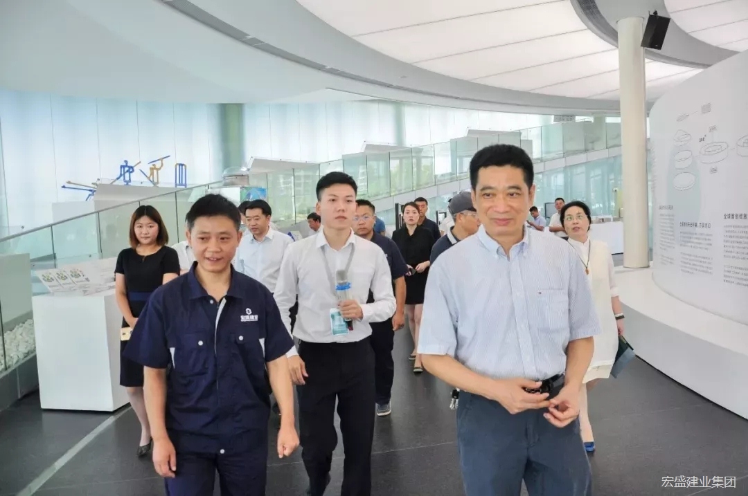在建筑科技产业园,调研组一行先后察看了项目建设现场和产业园最具有代表性的源·建筑科技文化馆,并组织召开相关人员座谈会。宏盛建业投资集团执行总裁周金旺、产业园执行总裁何丹分别就企业发展与项目建设进展情况,和产业园招商运营中需要解决的有关问题进行了汇报。