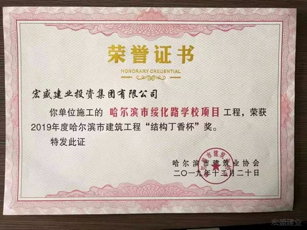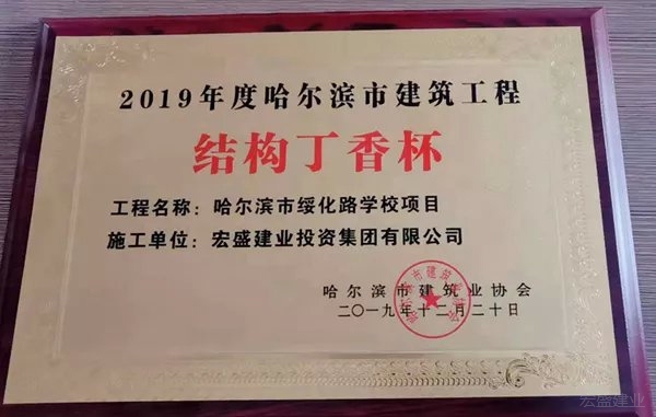 近日,喜讯传来,由宏盛建业承建的哈尔滨市绥化路学校项目,荣获哈尔滨市建筑业协会授予的2019年度哈尔滨市建筑工程“结构丁香杯”工程奖,该奖项是哈尔滨市建筑业协会年度最高质量奖项。
